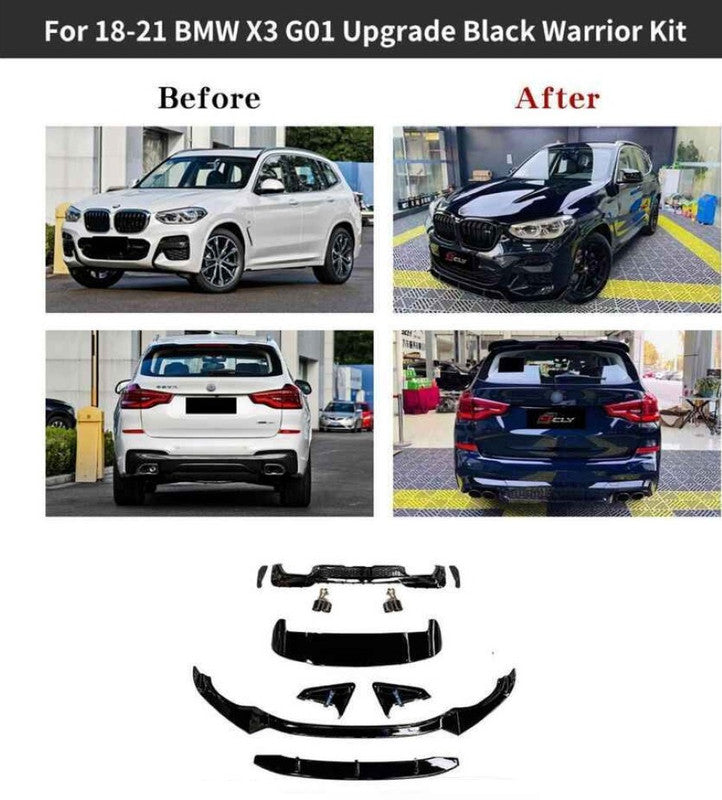 Car Craft Compatible With Bmw X3 G01 2018-2021 M Sport Mp M Performance Bumper Upgrade Convert To M Sport X3m Aero Black Samurai Bodykit Diffuser Exhaust Tip Pipe G01/08-015 Gc