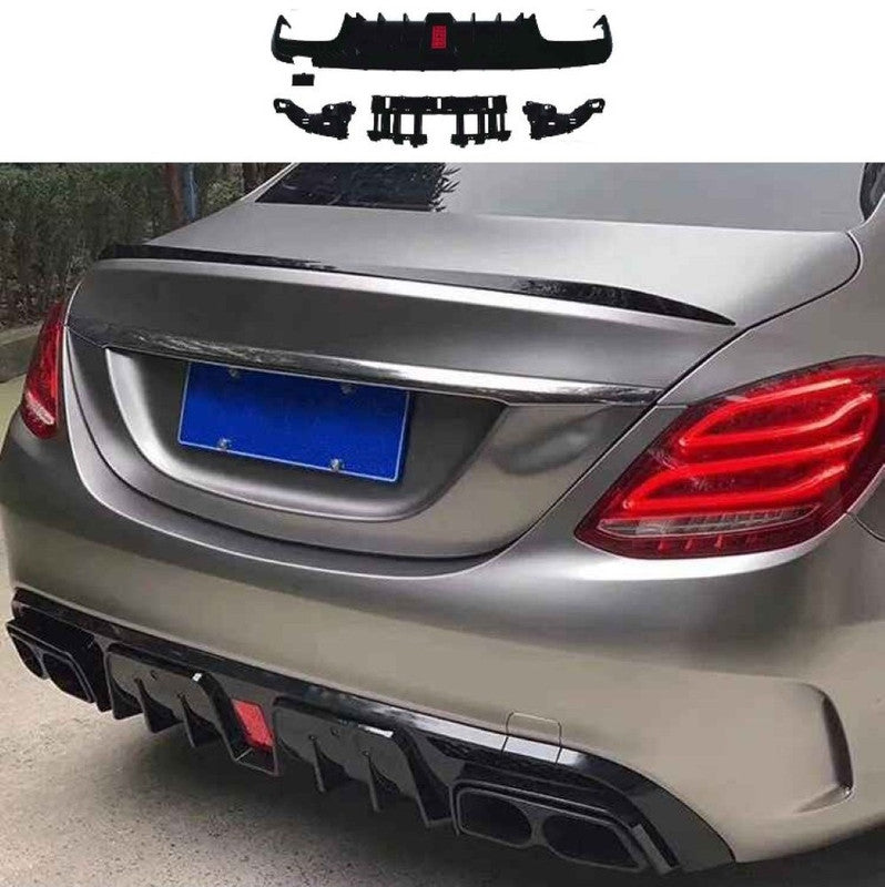 CAR CRAFT COMPATIBLE WITH MERCEDES BENZ C CLASS W205 2015-2021 AMG REAR BUMPER UPGRADE CONVERT TO AMG AMG C63 AFTER REAR LIP DIFFUSER BRABUS STYLE GLOSSY BLACK GC W205-028 GB