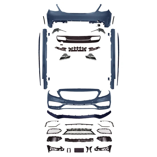 Car Craft Compatible With Mercedes Benz C Class W205 2015-2021 Front Rear Bumper Side Skirt Diffuser Exhaust Tip Upgrade Convert To Amg Amg C63 Bumper Bodykit GC W205-037
